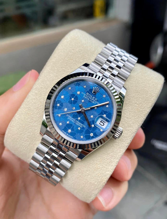 Rolex Datejust 31mm, Blue Floral Dial, Fluted, Jubilee, Steel (2024). Model 278274-0036