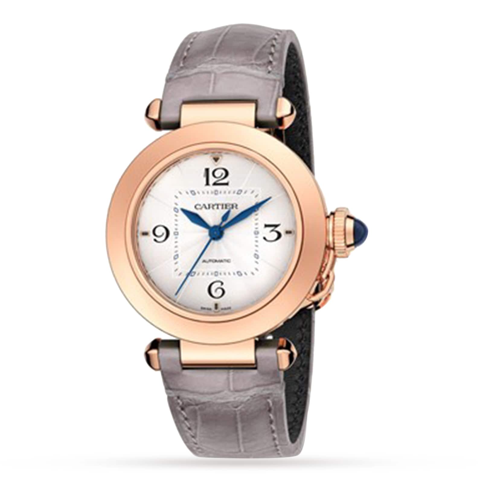 With a case diameter of 35mm and a thickness of 9.37mm, the Pasha De Cartier is water-resistant up to 10 bar (approximately 100 meters or 100 feet), ensuring both durability and style. Originally inspired by a round, water-resistant watch introduced in 1943, the Pasha series remains a symbol of Cartier’s rich watchmaking tradition, combining distinctive features with a powerful, elegant presence.