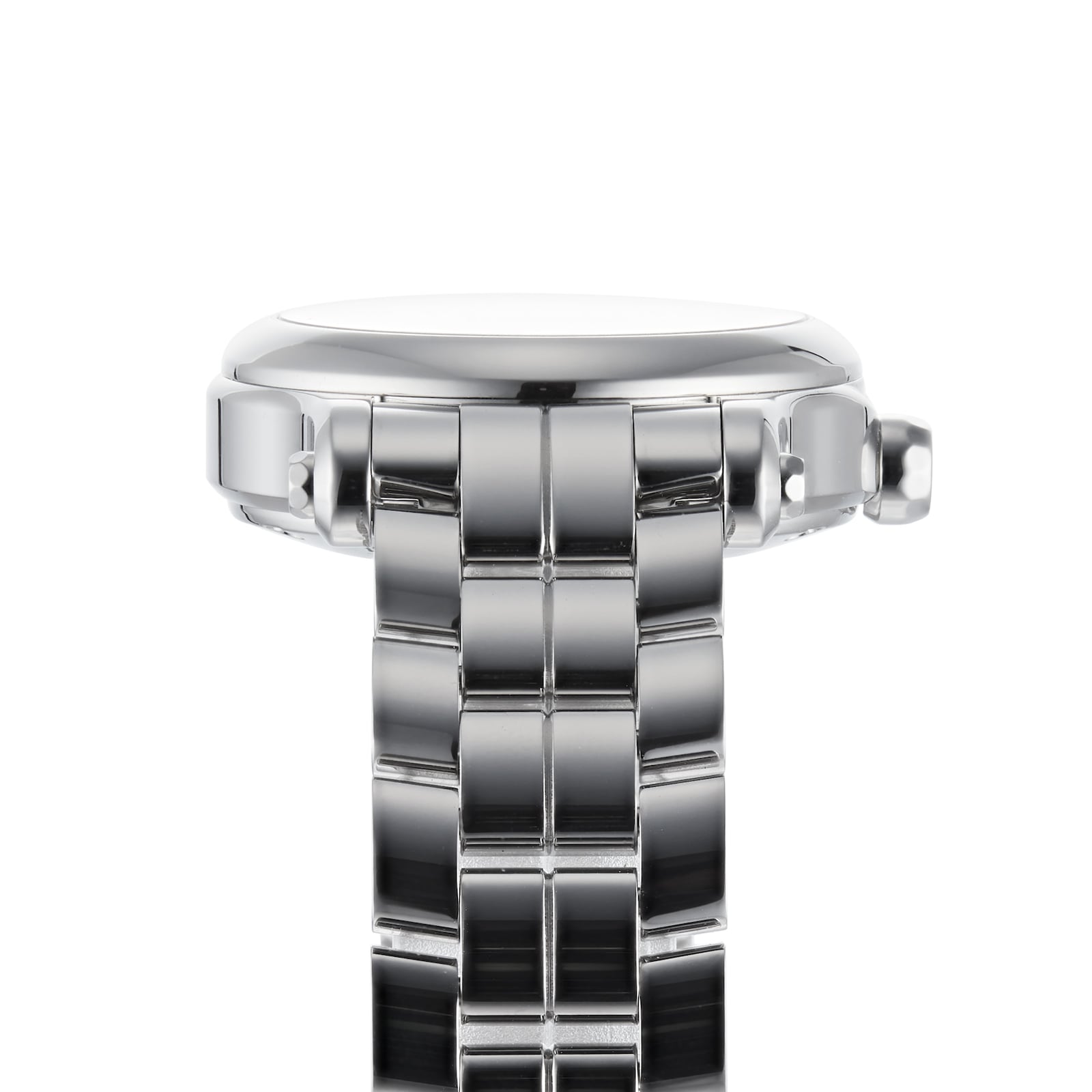 This 30mm timepiece features a sleek stainless steel case that showcases a dazzling array of diamonds, dancing gracefully across the watch face. The silver-coloured dial is enriched with a luxurious guilloché centre, while rose gold hour markers and hands add a touch of sophistication. A practical date window enhances its functionality.