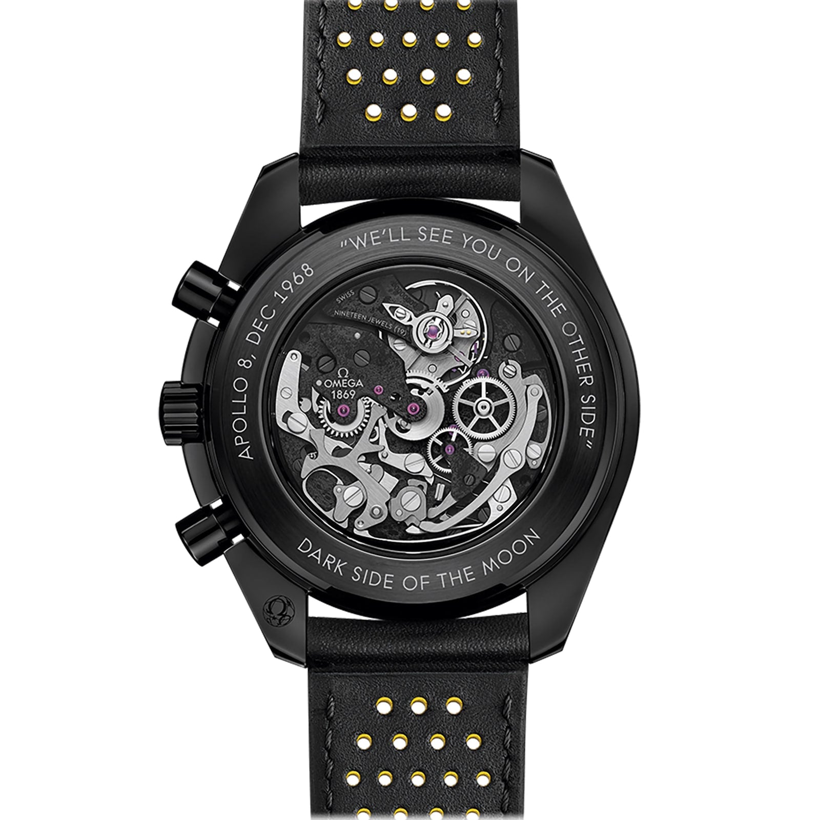 - Caseback Inscription: The transparent caseback is engraved with “We’ll see you on the other side,” a tribute to Jim Lovell’s iconic words before Apollo 8’s historic journey.